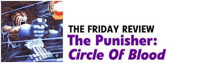 This is anything but the case with Frank Castle, aka the Punisher. Up until CIRCLE OF BLOOD's initial release in 1986, the character was seen as a violent manifestation of 'poetic justice', an angle still extant today - but under Miller on DAREDEVIL, Castle was written as a stone-cold lunatic; a nuisance with high-calibre weapons.