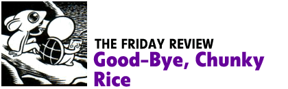 [i3] GOOD-BYE, CHUNKY RICE was the first graphic novel by Craig Thompson, and the book feels like something that may have happened to him, with turtles and field mice standing in for the real people. The characters speak in sentences that are poetic without sounding silly; a line like, "You're like a little flower that's outgrown its pot," works because it has the ring of sincerity to it, while the book's final line of dialogue, simple as it is, encapsulates its themes in a moment of surprising power.