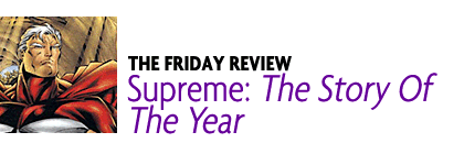 With MIRACLEMAN and CAPTAIN BRITAIN in the early 1980s, Moore began the deconstruction of the superhero, which WATCHMEN took to the limit. SUPREME: THE STORY OF THE YEAR, however, sees Moore - in a sense - come full circle. Moore credits Harvey Kurtzman's MAD parody 'Superduperman' as the reactor that fired up his thinking about superheroes. Having Moore and Veitch pay homage to that (as noted above) is just one of many small moments that make the whole work.